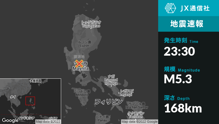 | 震源地 | フィリピンのTikiwから西南西0kmの地点 |