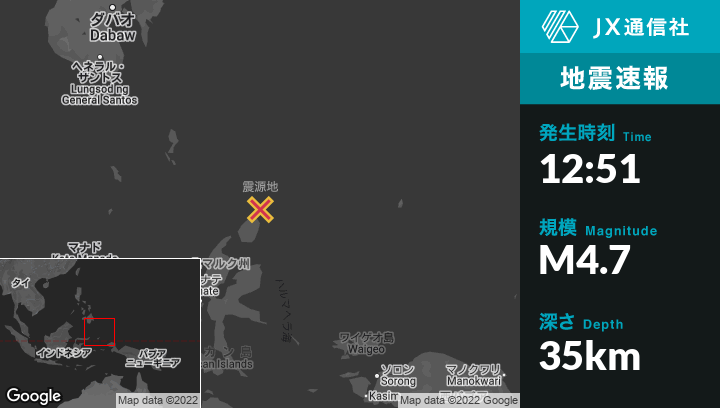 | 震源地 | インドネシアのTobeloから北北東149kmの地点 |