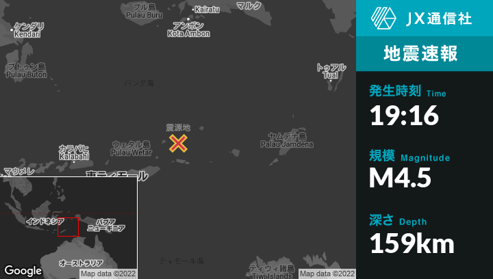 11月11日 19:16頃、東ティモールのLospalosから北東148kmの地点でM4.5の地震がありました。