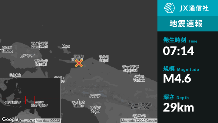 | 震源地 | インドネシアのBiakから南東111kmの地点 |