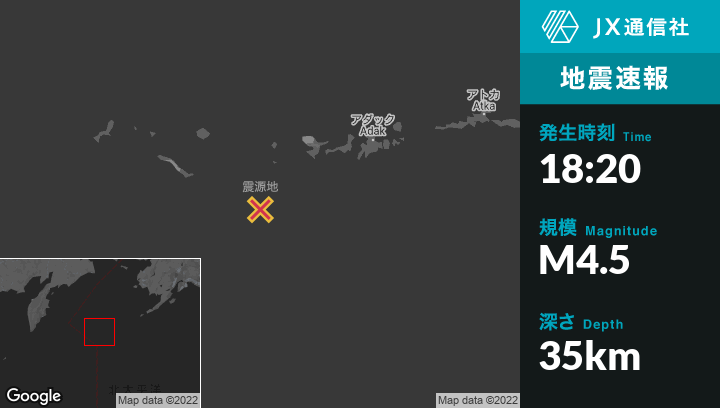 | 震源地 | アラスカのAdakから西南西198kmの地点 |