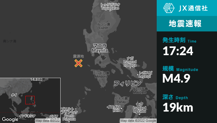 | 震源地 | フィリピンのCabraから西北西71kmの地点 |