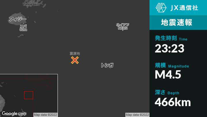 | 震源地 | トンガのHavelulotoから西北西258kmの地点 |