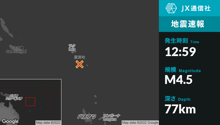 | 震源地 | ソロモン諸島のLataから南東100kmの地点 |
