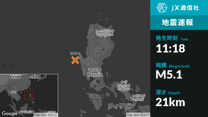 11月19日 11:18頃、フィリピンのIlioilioから西北西32kmの地点でM5.1の地震がありました。