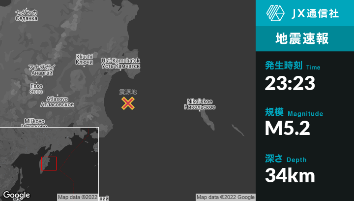 | 震源地 | ロシアのUst’-Kamchatsk Staryyから南南東86kmの地点 |