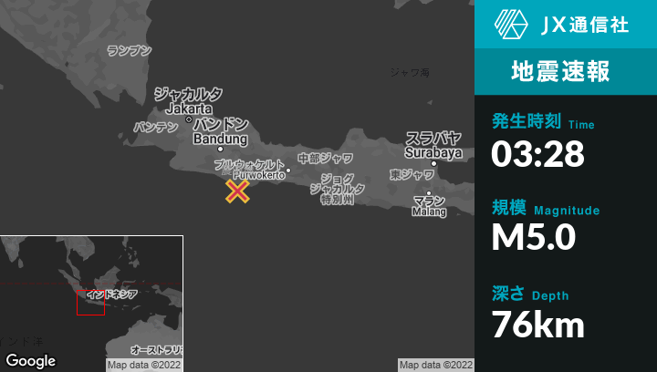 | 震源地 | インドネシアのSingaparnaから南南西51kmの地点 |