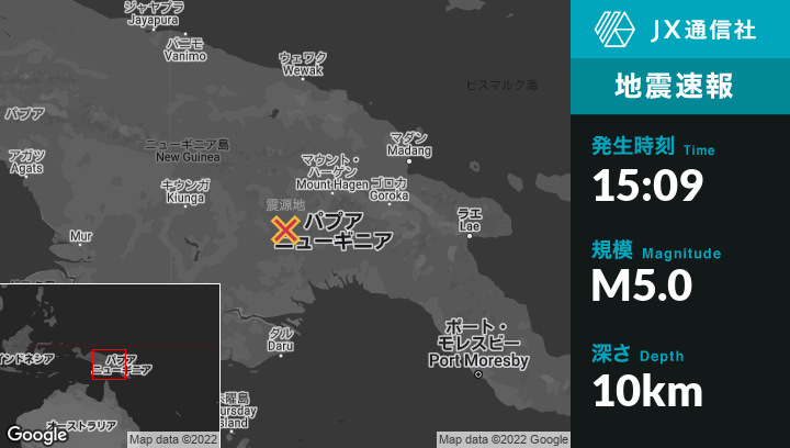 | 震源地 | パプアニューギニアのMendiから南西53kmの地点 |