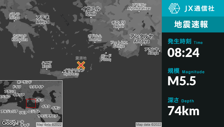 | 震源地 | ギリシャのFryから北西64kmの地点 |