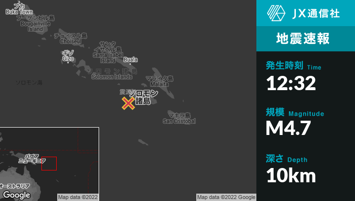 11月22日 12:32頃、ソロモン諸島のMalangoから西南西24kmの地点でM4.7の地震がありました。