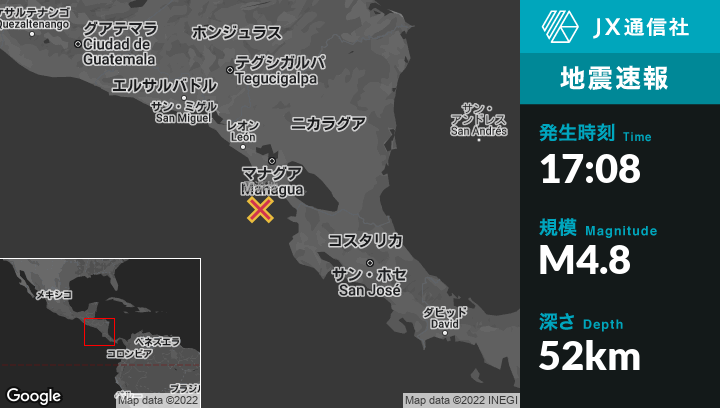 | 震源地 | ニカラグアのMasachapaから南65kmの地点 |