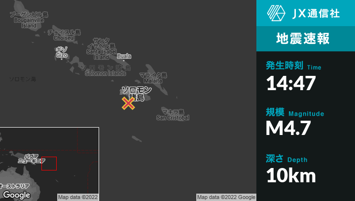 | 震源地 | ソロモン諸島のMalangoから南南東26kmの地点 |