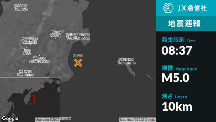 | 震源地 | ロシアのUst’-Kamchatsk Staryyから南94kmの地点 |