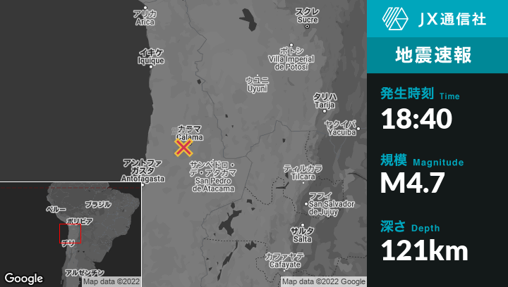 | 震源地 | チリのCalamaから西20kmの地点 |