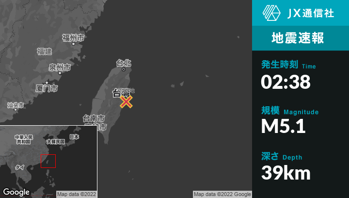 | 震源地 | 台湾のHualien Cityから南南東19kmの地点 |
