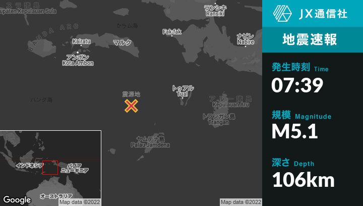 | 震源地 | インドネシアのTualから西249kmの地点 |