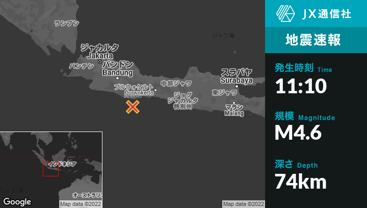 | 震源地 | インドネシアのKawaluから南70kmの地点 |