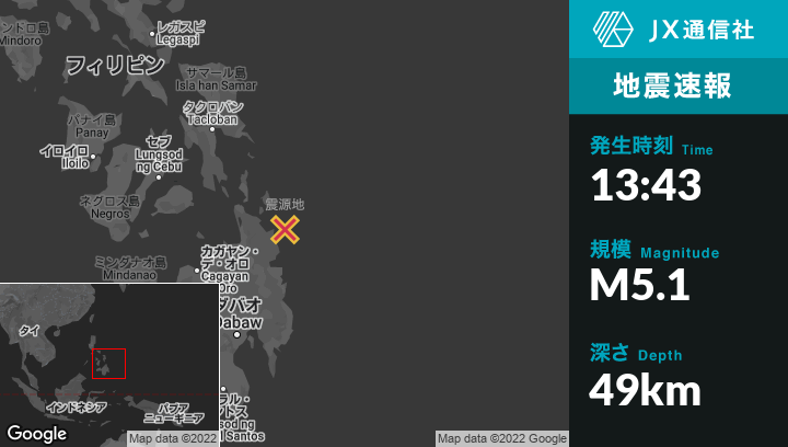 | 震源地 | フィリピンのCortesから東北東28kmの地点 |