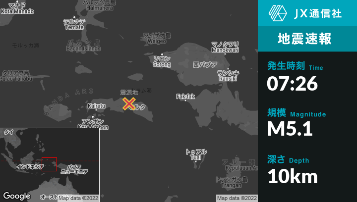 | 震源地 | インドネシアのAmahaiから東北東106kmの地点 |