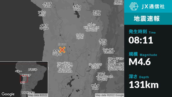 | 震源地 | チリのCalamaから北北東86kmの地点 |