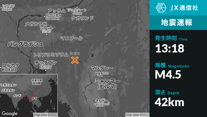 | 震源地 | ミャンマーのFalamから北東47kmの地点 |