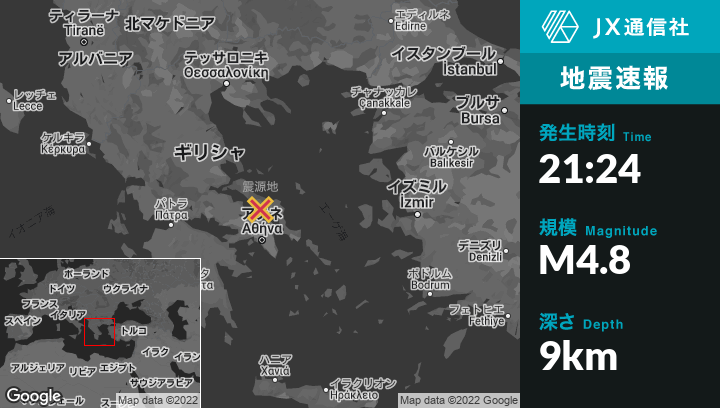 | 震源地 | ギリシャのPsachnáから北東5kmの地点 |