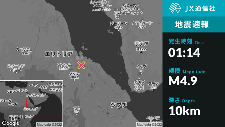 | 震源地 | エチオピアのĀdīgratから北東65kmの地点 |