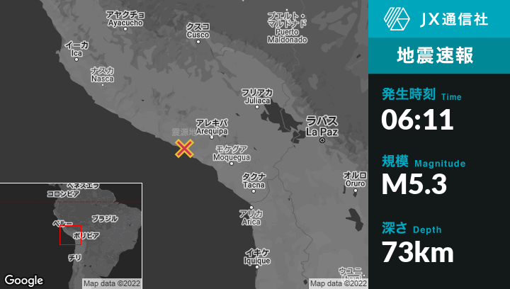 | 震源地 | ペルーのQuilcaから北北東10kmの地点 |