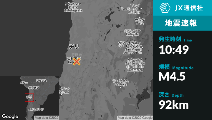 | 震源地 | チリのCopiapóから南南東34kmの地点 |