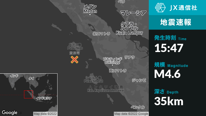 | 震源地 | インドネシアのSibolgaから南西220kmの地点 |