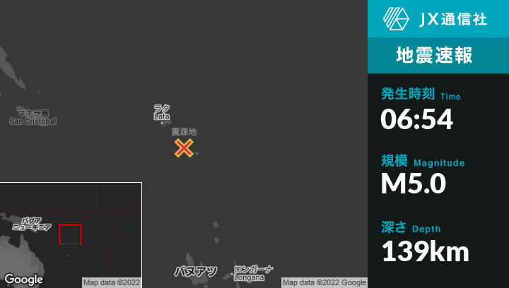 | 震源地 | ソロモン諸島のLataから南東103kmの地点 |