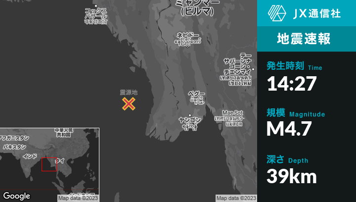 | 震源地 | ミャンマーのPatheinから西北西156kmの地点 |
