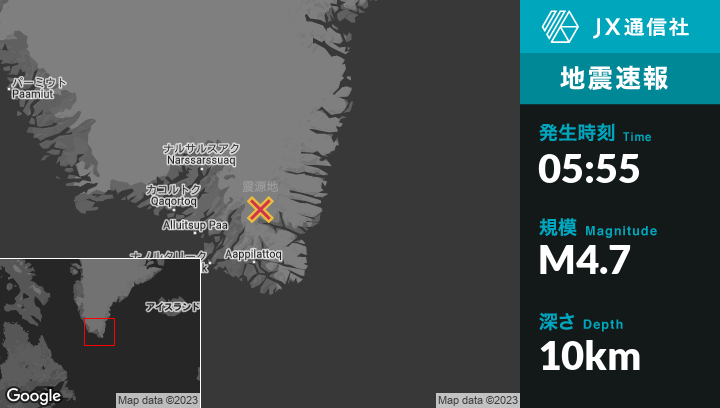 | 震源地 | グリーンランドのNanortalikから北東92kmの地点 |