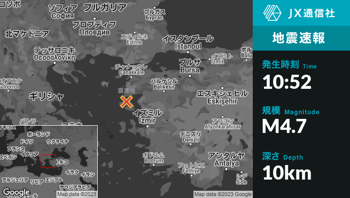 | 震源地 | ギリシャのMíthymnaから北北東2kmの地点 |