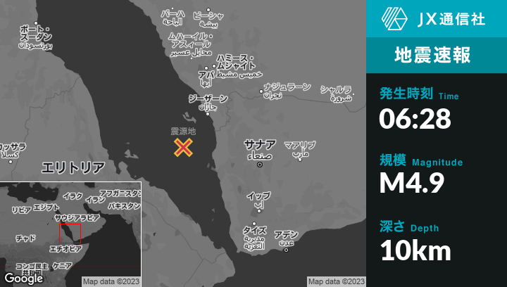 1月10日 06:28頃、サウジアラビアのFarasānから南南西85kmの地点でM4.9の地震がありました。