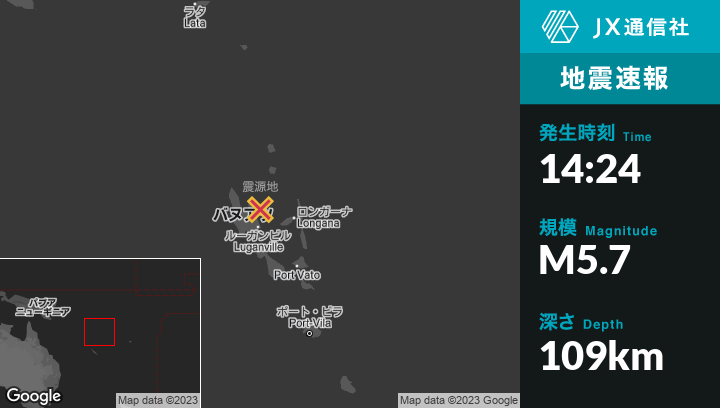 | 震源地 | バヌアツのPort-Olryから東北東18kmの地点 |