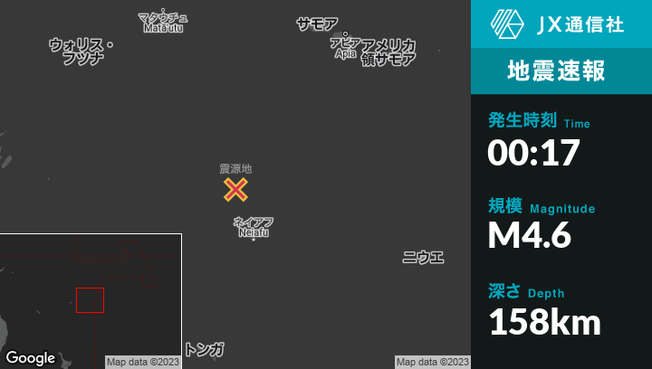 | 震源地 | トンガのNeiafuから北北西148kmの地点 |