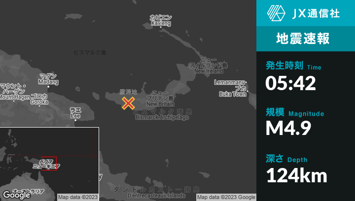 | 震源地 | パプアニューギニアのKandrianから北北西46kmの地点 |