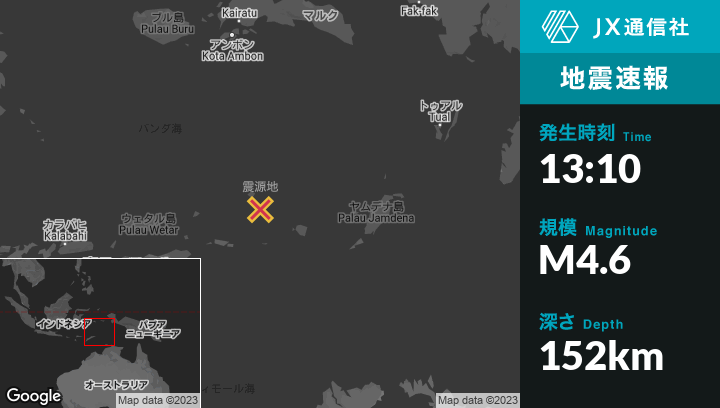 1月14日 13:10頃、東ティモールのLospalosから東北東239kmの地点でM4.6の地震がありました。