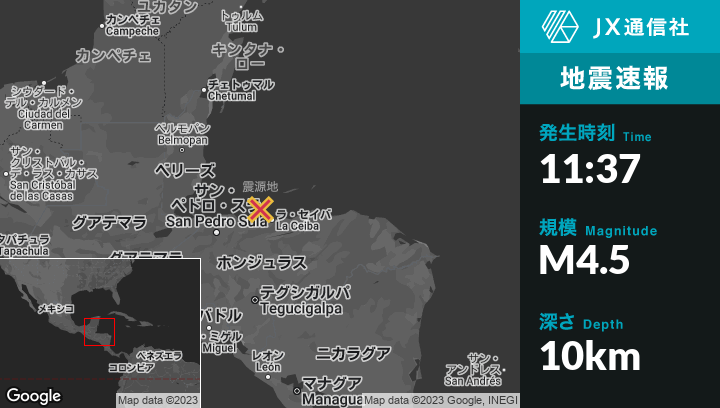 | 震源地 | ホンジュラスのEl Porvenirから北北西42kmの地点 |