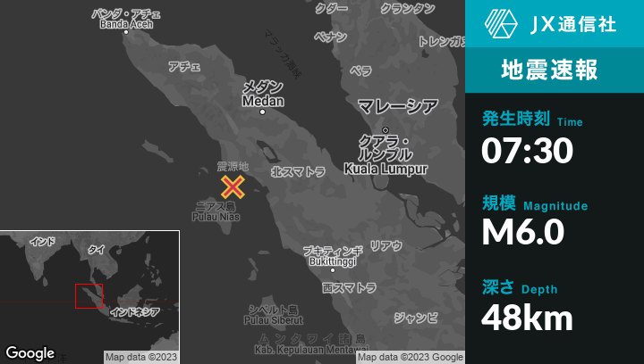 | 震源地 | インドネシアのSingkilから南南東48kmの地点 |