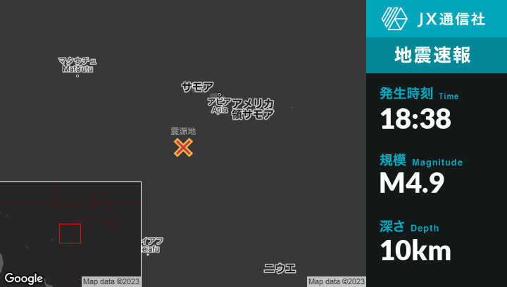 1月17日 18:38頃、トンガのHihifoから北東119kmの地点でM4.9の地震がありました。