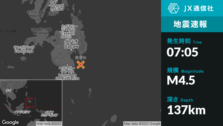 | 震源地 | フィリピンのPondaguitanから南西13kmの地点 |