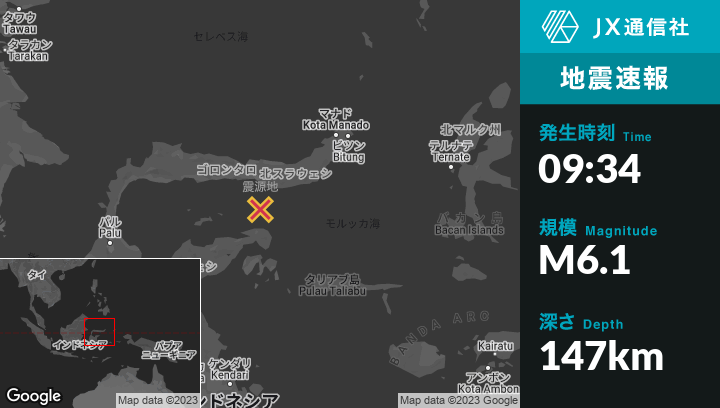 | 震源地 | インドネシアのGorontaloから南南東65kmの地点 |