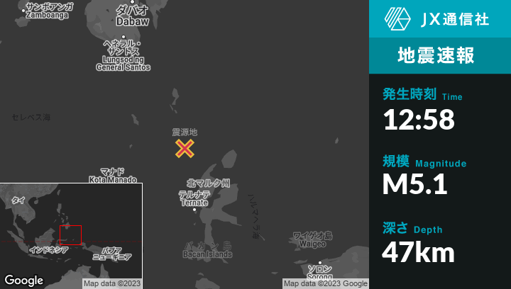 | 震源地 | インドネシアのTobeloから北西155kmの地点 |
