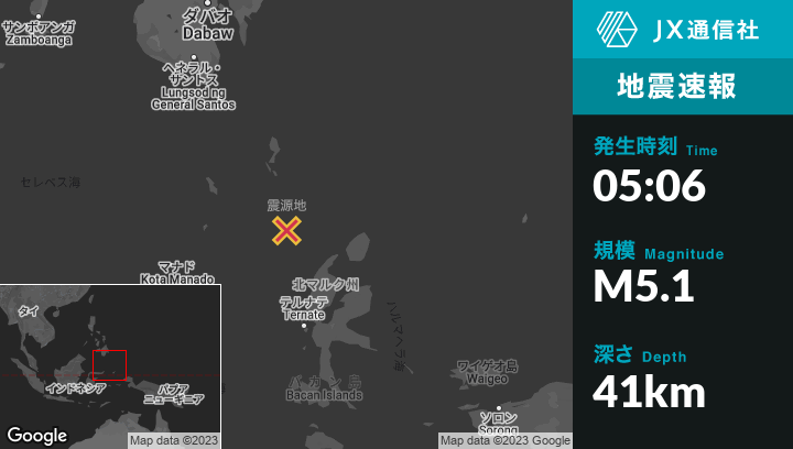 | 震源地 | インドネシアのTobeloから北西160kmの地点 |
