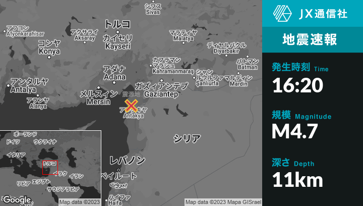 3月01日 16:20頃、トルコのGünyazıから北西7kmの地点でM4.7の地震がありました。