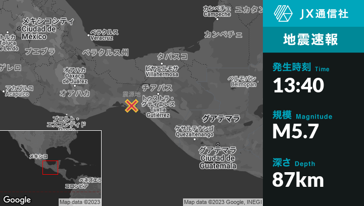 | 震源地 | メキシコのSan Pedro Tapanatepecから西南西8kmの地点 |