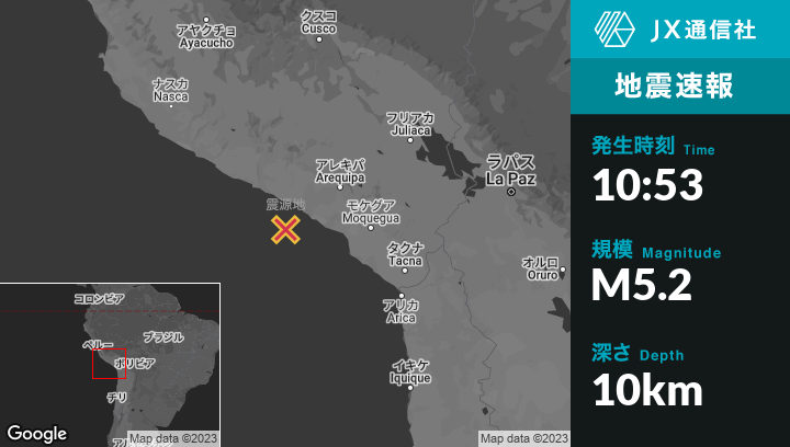 | 震源地 | ペルーのQuilcaから南南西48kmの地点 |