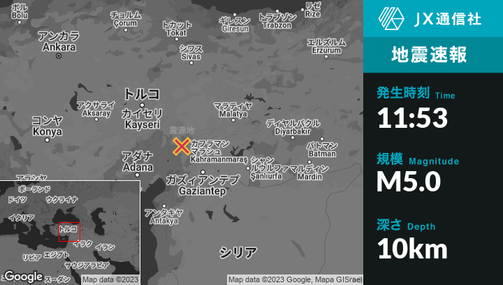 | 震源地 | トルコのGöksunから南東30kmの地点 |